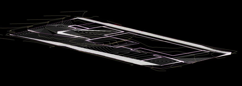 This is our first sideways lot in Altadena, with the entrance on the West side and the topography slopes North to South. The goal is to drain as much stormwater to the street as possible using gravity. There is about a 6 foot drop North to South over a 75 ft run and the lot is deep at 200 ft. Seeing the excavation for the lot clearance there isn’t much to work with. The County is really against cross draining without putting devices to take up the volume difference from a storm. The only real solution is to either gravity flow from the rear furthest corner or pickup in area drains to get to the driveway apron.
